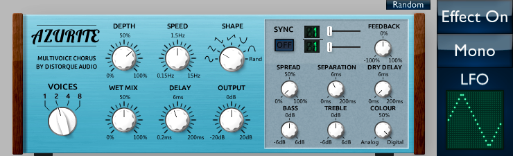 Azurite’s ability to use up to eight independent voices with separate LFOs creates a richer and smoother sound compared to standard single-voice chorus effects.