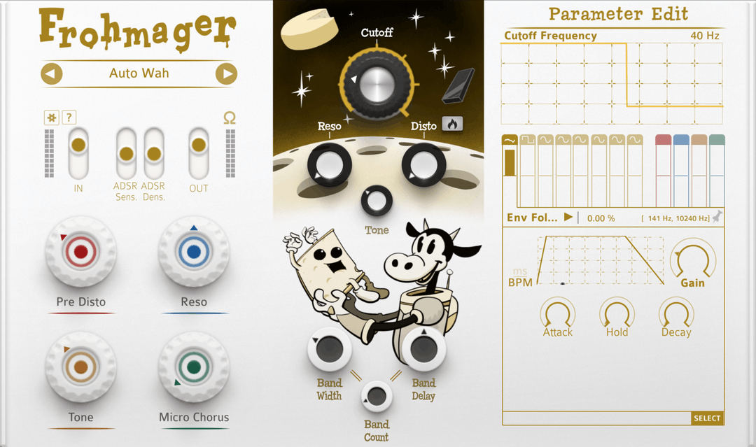 The heart of Frohmager is its resonant low-pass filter, designed to retain and amplify harmonic content rather than thinning it out. Sweeps feel bold and musical, with resonance that adds weight and colour instead of collapsing into brittle peaks.