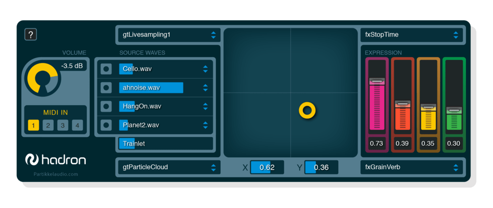 From live sampling to pre-analyzed sound file manipulation, Hadron offers various ways to interact with audio. Users can record and analyze sound files on the fly, or use live audio input for real-time processing, making Hadron perfect for everything from experimental sound design to live performance applications.
