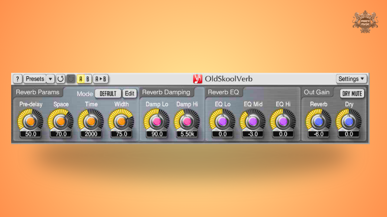OldSkoolVerb offers a comprehensive parameter set, including five reverb modes and a dedicated reverb mode editor, allowing users to fine-tune behaviour across room, plate, and hall styles.