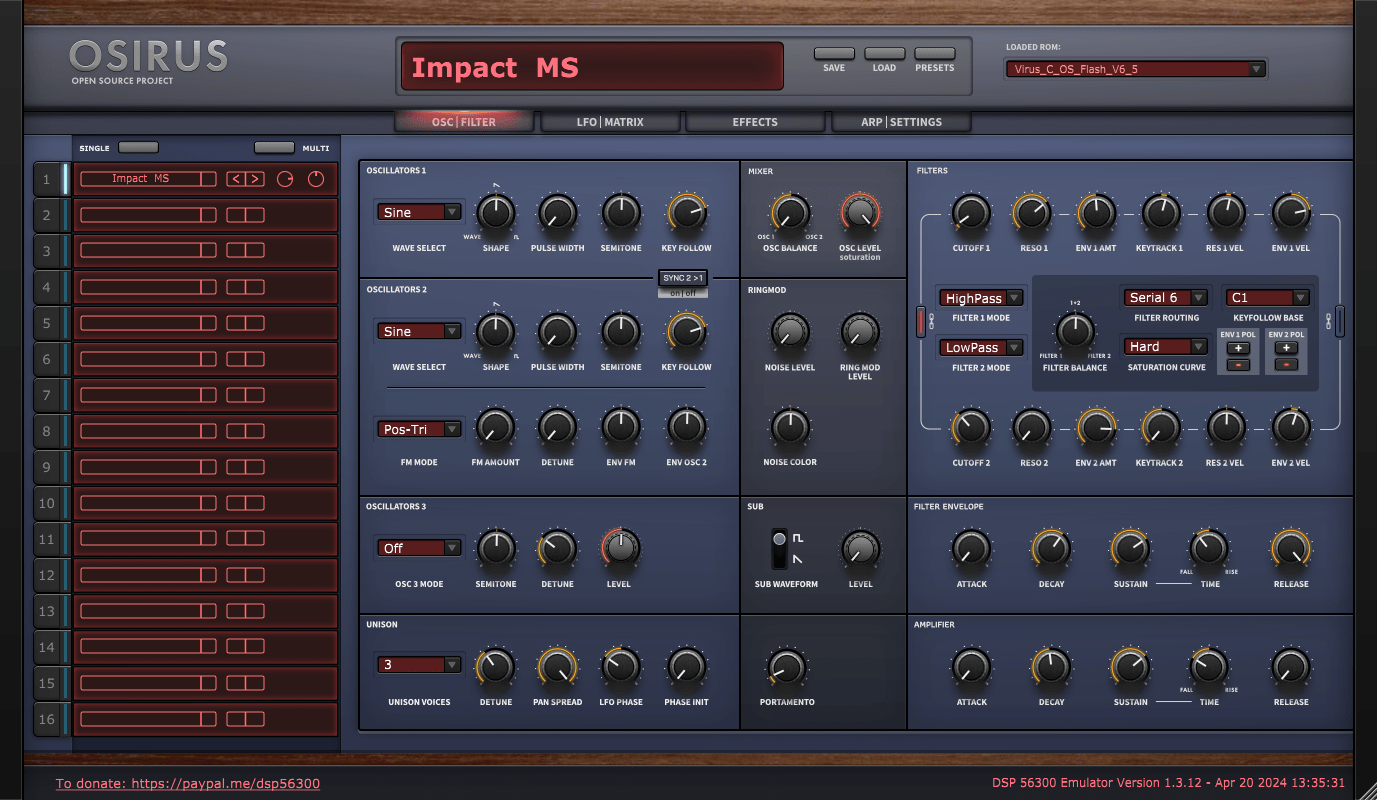 OsTIrus reproduces the original DSP-based design of the Access Virus TI, including hypersaw oscillators, wavetable synthesis, grain tables, formant oscillators, and complex modulation routing.